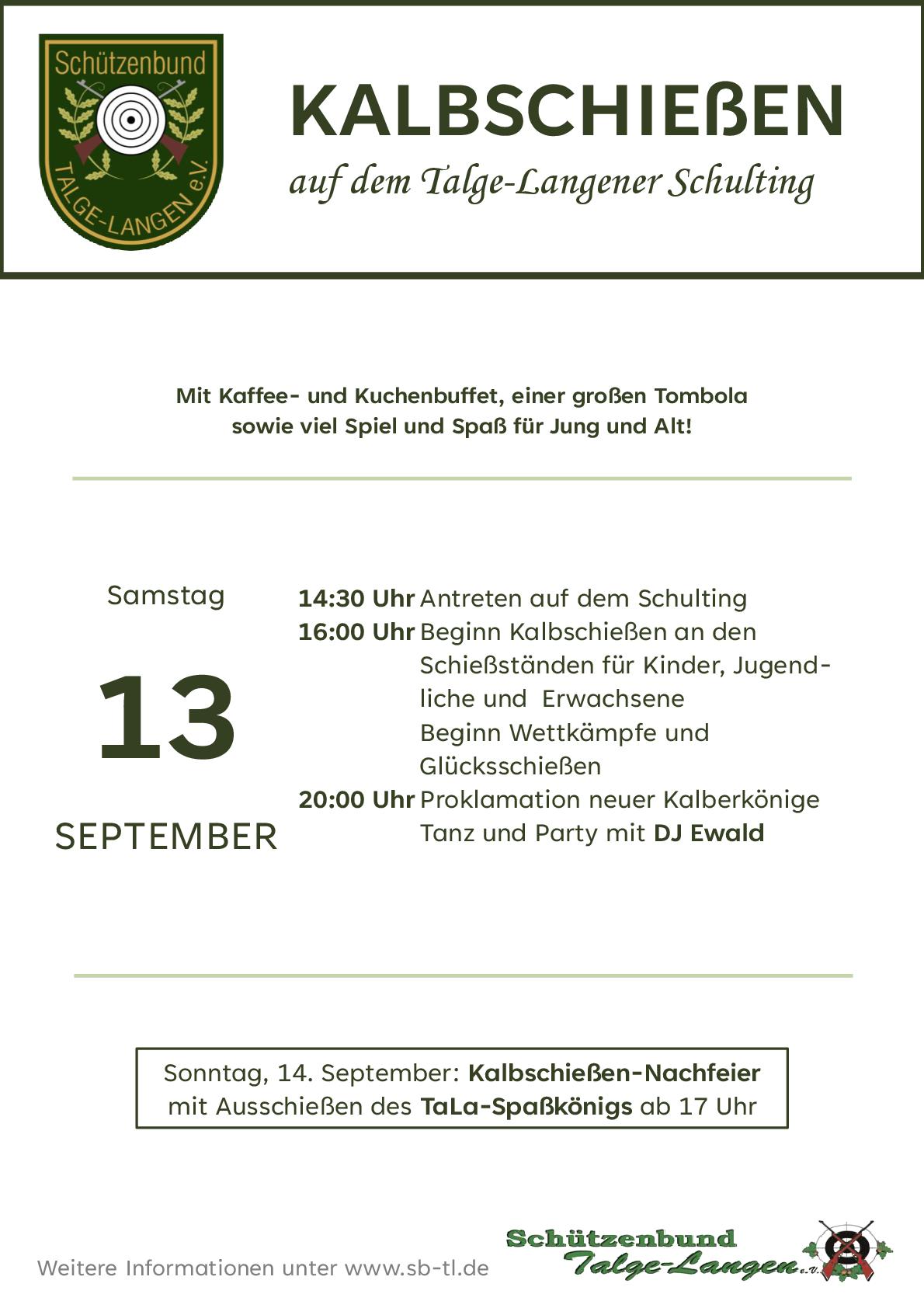 Am 13. September tritt der Schützenbund Talge-Langen wieder zum alljährlichen Kalbschießen an.